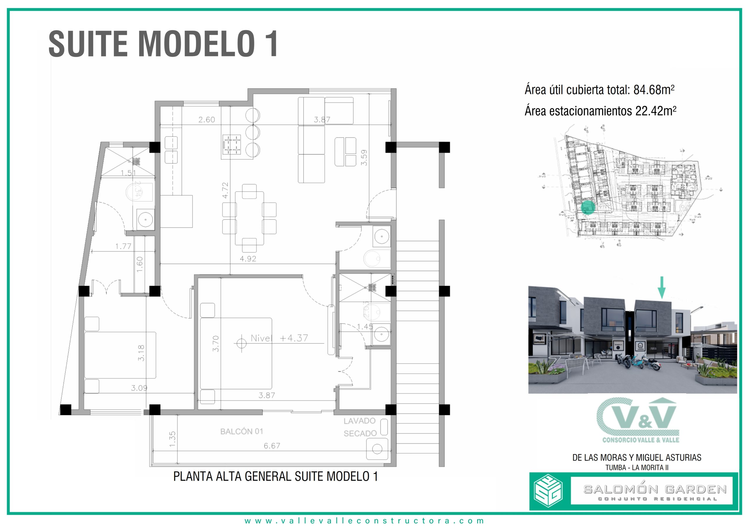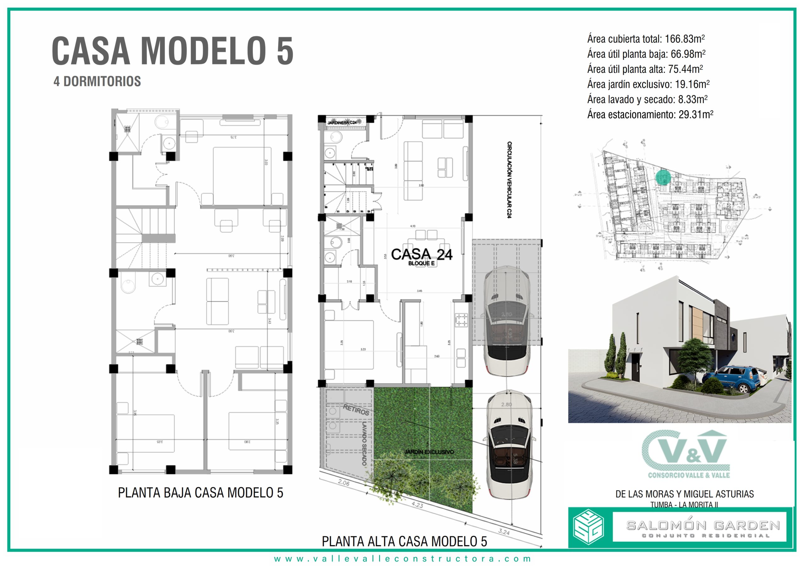 Con un diseño arquitectónico impresionante. El conjunto SALOMÓN GARDEN, ofrece una variedad de casas apartamentos espaciosos y elegantes, perfectos para individuos, parejas y familias. Cada unidad está diseñada para proporcionar comodidad y estilo, adaptándose a las necesidades de todos los residentes.\nEspaciosas habitaciones: La casa dispone de hasta 4 dormitorios, incluyendo una habitación principal con baño privado y vestidor.